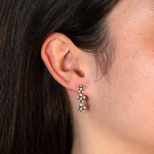 Vintage 9ct Two-Tone Gold Diamond Snowflake Drop Earrings