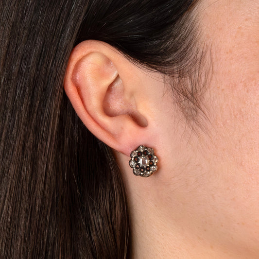 Victorian Old Cut Diamond Cluster Stud Earrings