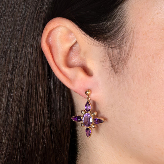 Vintage 10ct Yellow Gold Amethyst Star Drop Earrings