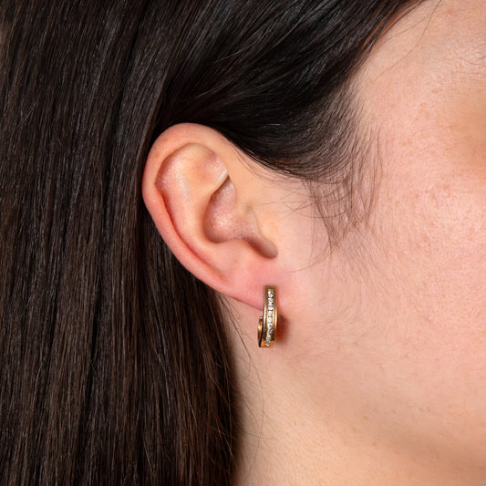 Vintage 9ct Gold Diamond Huggie Hoop Earrings