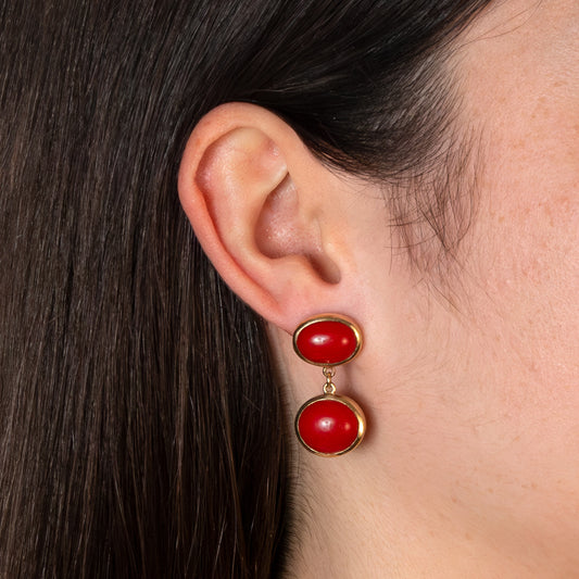 9ct Yellow Gold Rubover Coral Drop Earrings
