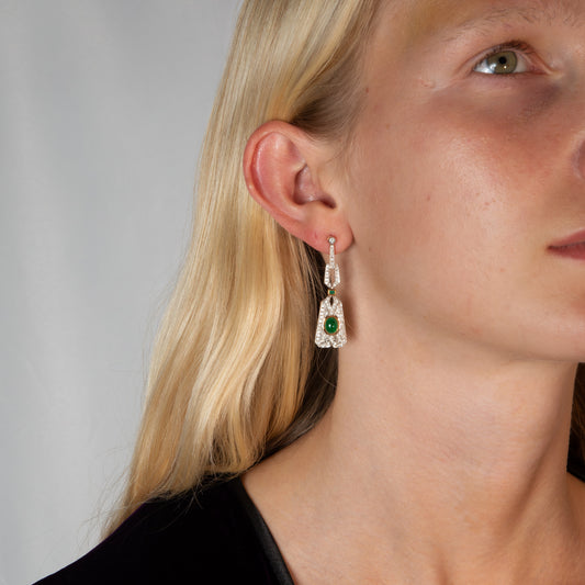 Art Deco Style 18ct Gold Emerald & Diamond Drop Earrings
