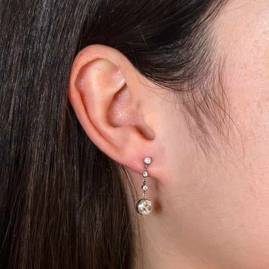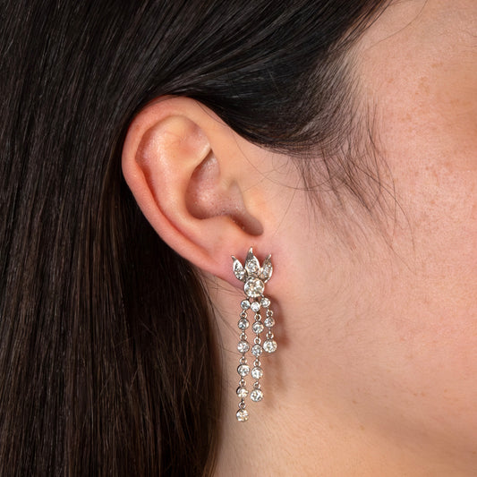 Vintage 18ct White Gold Old Cut Diamond Drop Earrings