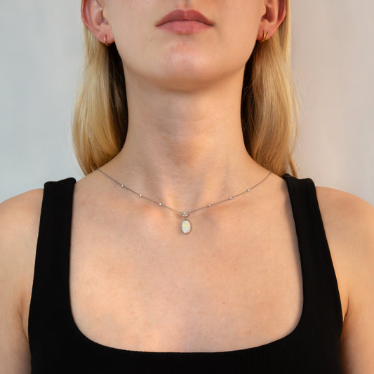 18ct Opal and Diamond Pendant On Diamond Speckled Chain