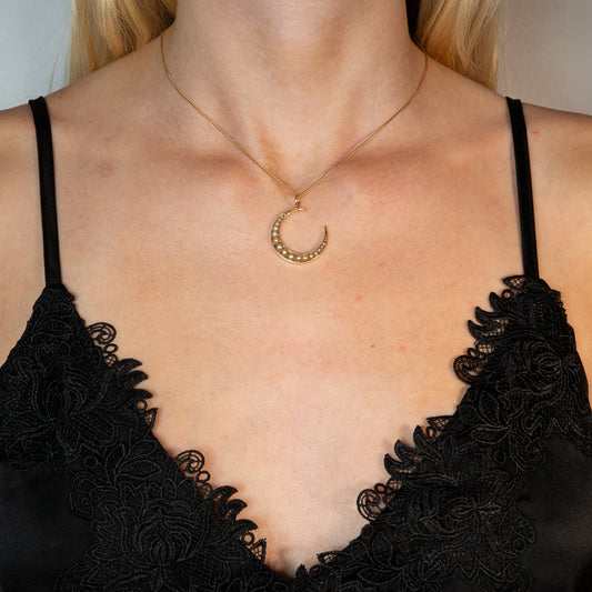 Victorian 15ct Gold Pearl Crescent Pendant