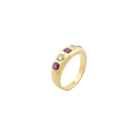 18ct Yellow Gold Ruby & Old Cut Diamond Gypsy 5-Stone Ring