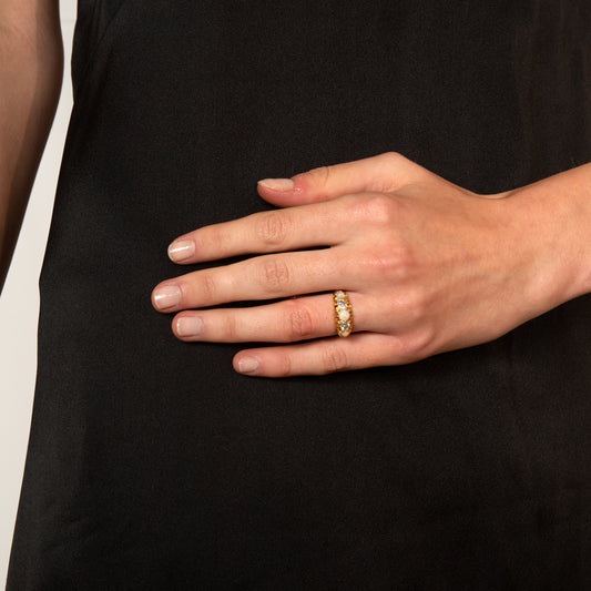 18ct Yellow Gold Opal & Diamond 5-Stone Ring