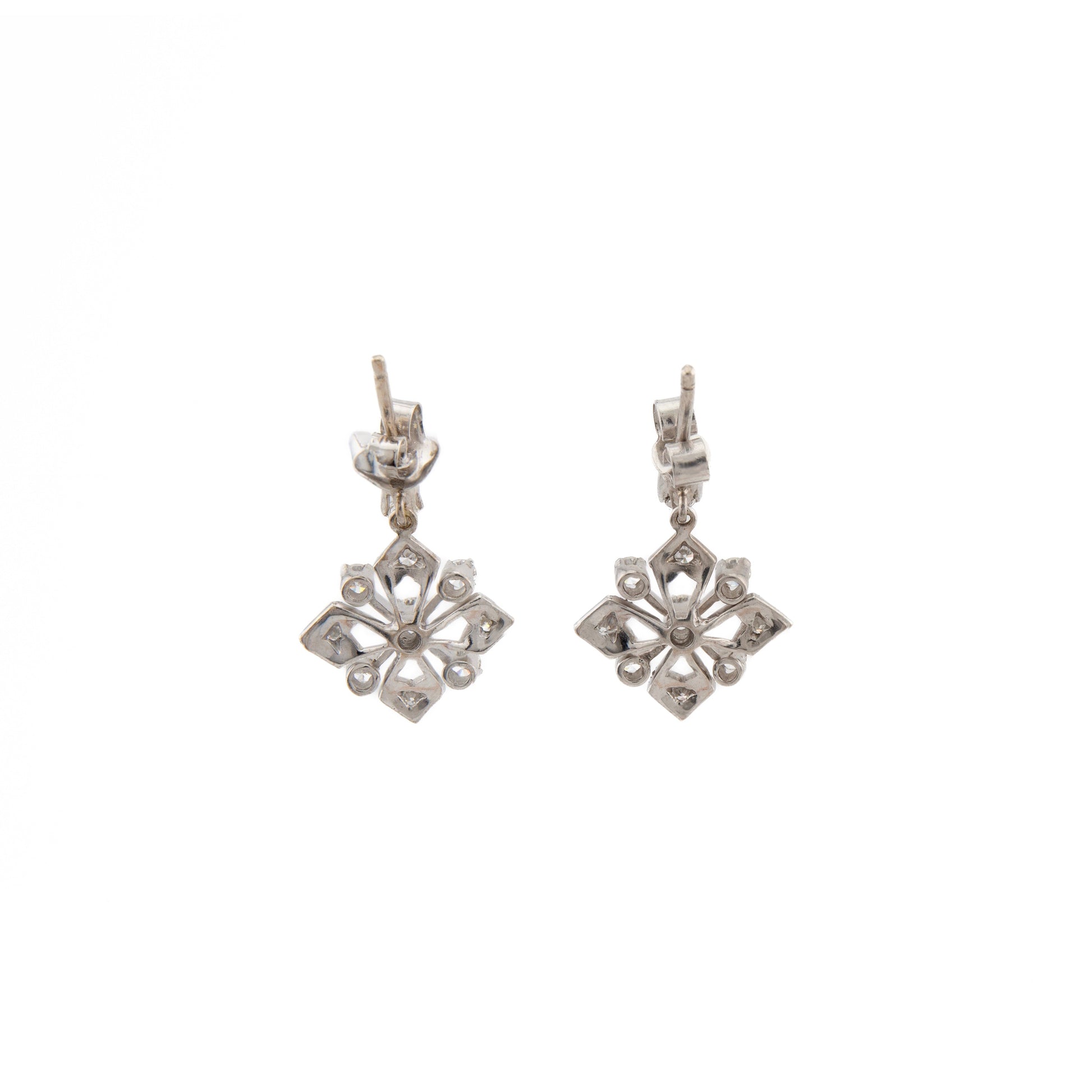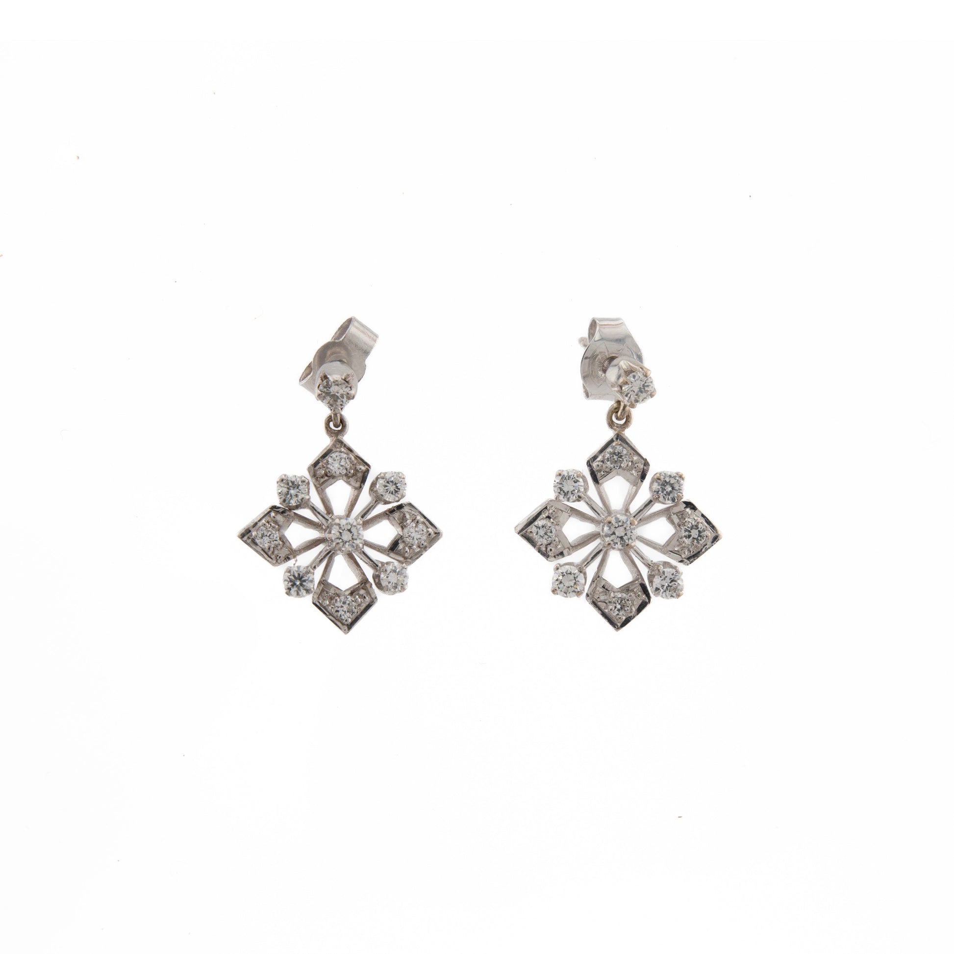 1920s pendant featuring a delicate snowflake design crafted in 18ct gold with diamond accents. This elegant drop piece captures the geometric precision typical of the era, with diamonds arranged in a crystalline pattern that catches the light beautifully.