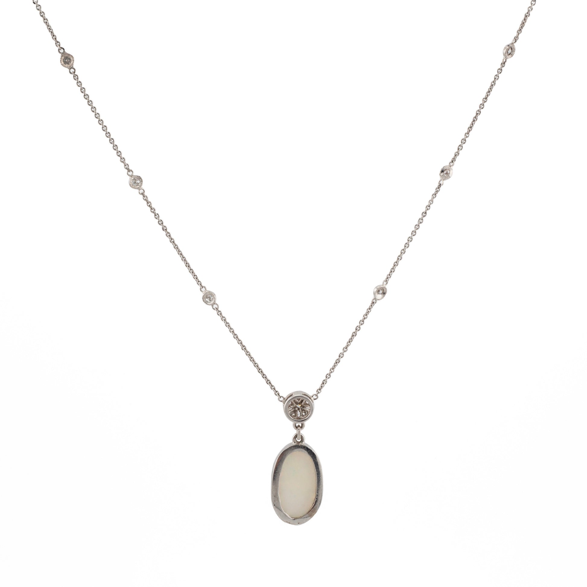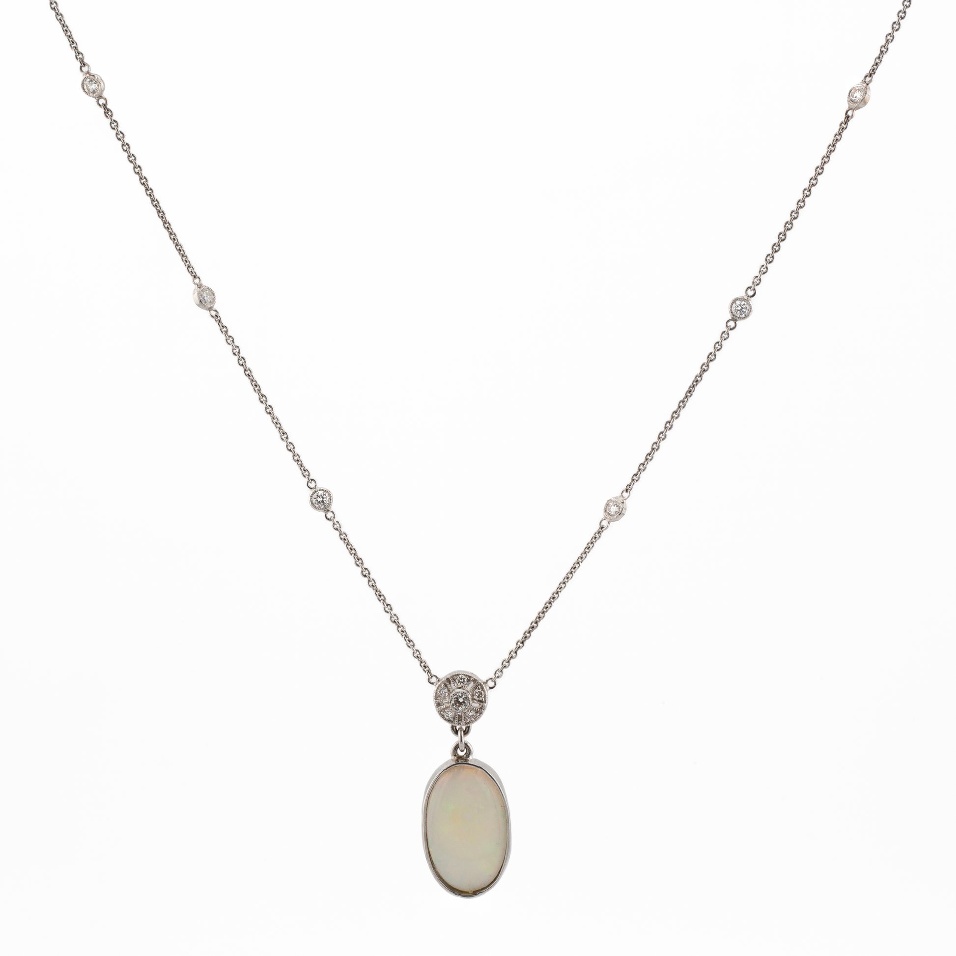 18ct Opal and Diamond Pendant On Diamond Speckled Chain