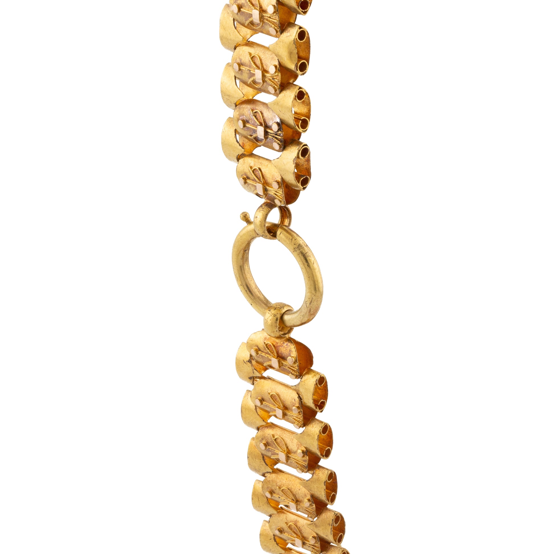 This remarkable mid-Victorian book chain and locket set is an exceptional example of 19th-century craftsmanship, beautifully preserved in its original fitted case. Crafted in rich 15ct yellow gold, the necklace features a bold articulated book chain design, each link finely detailed with decorative motifs.