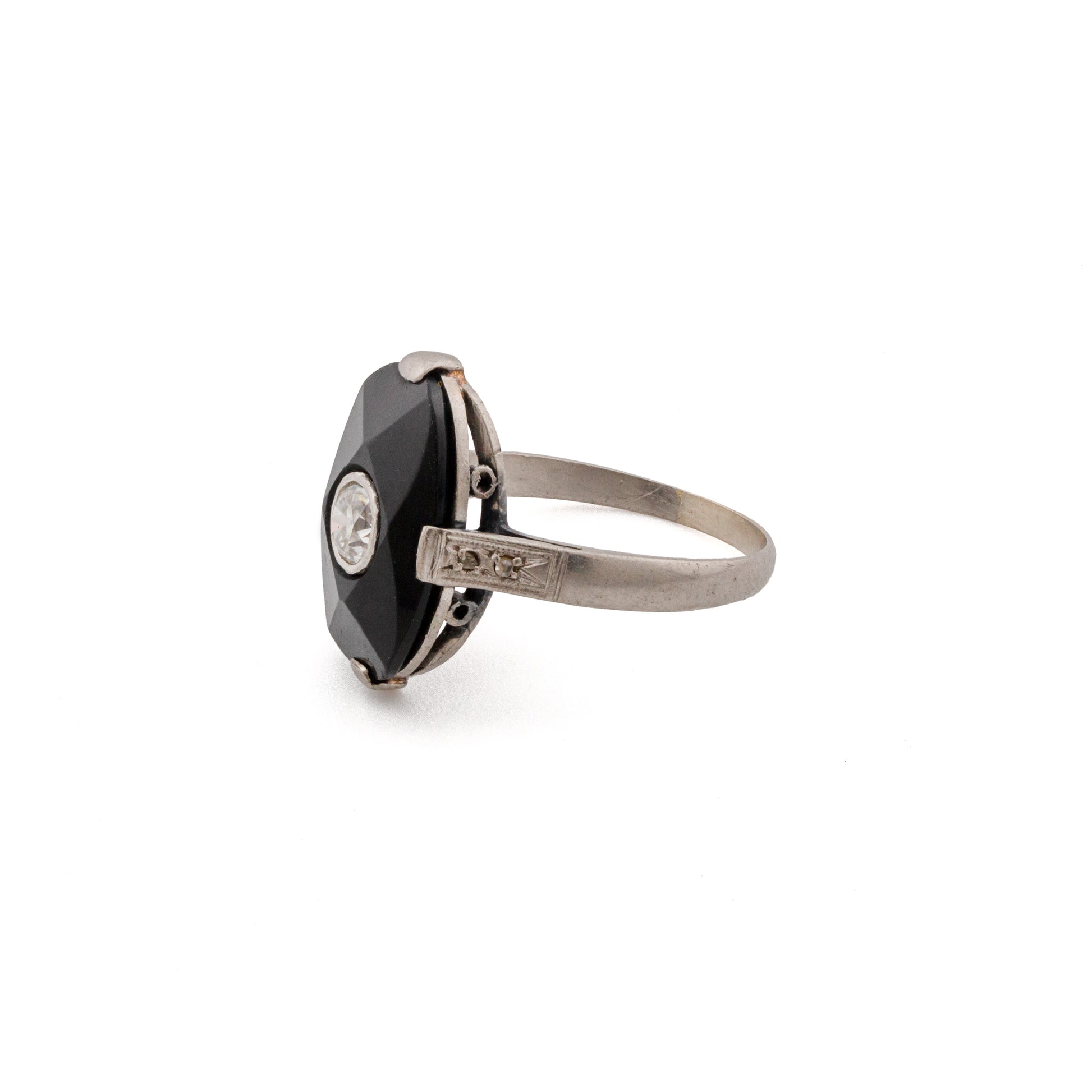 This ring embodies the elegance of the early 20th century, where bold monochrome combinations of onyx and diamond were highly fashionable.