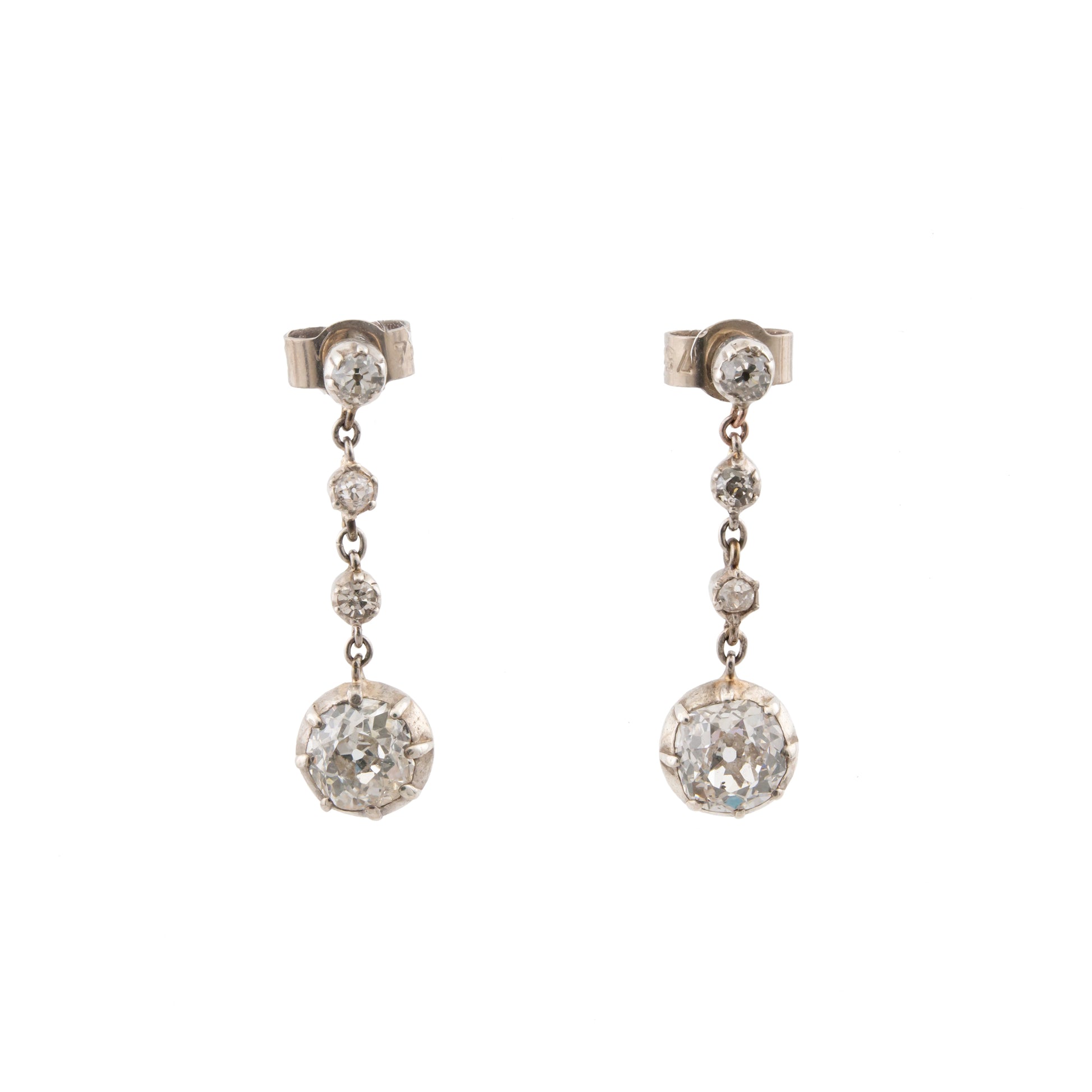 Vintage 18ct White Gold Old Cut Diamond Drop Earrings